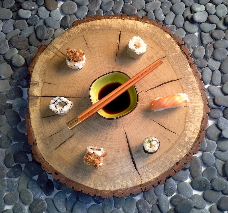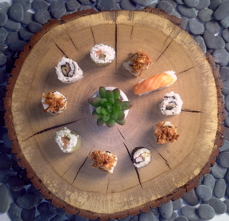 Un morceau de tronc en chêne de 40cm environ permet de présenter vos produits comme les sushis, fruits, etc.