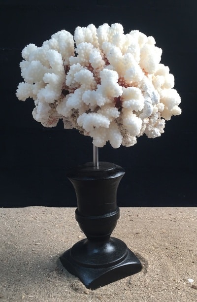 Ce corail patte de chat est monté sur un socle peint en noir.