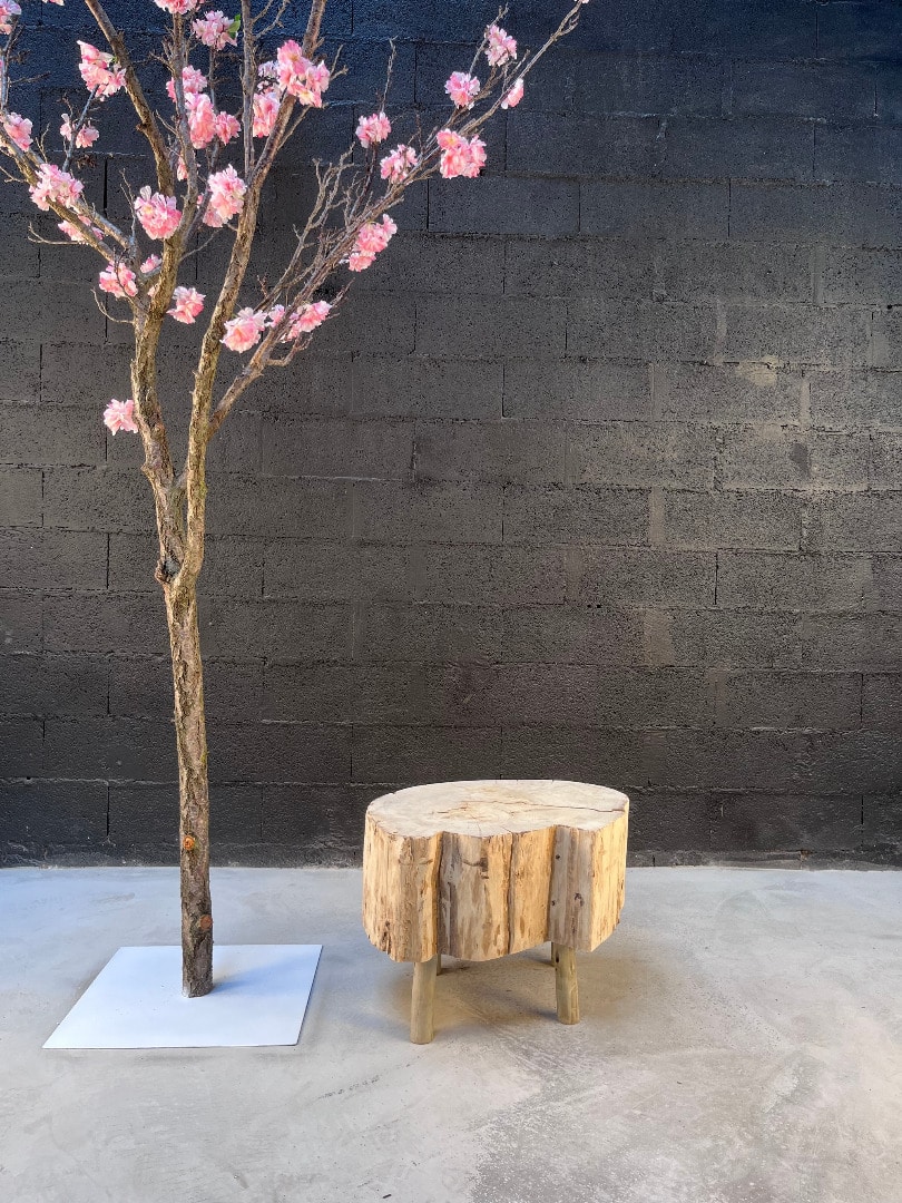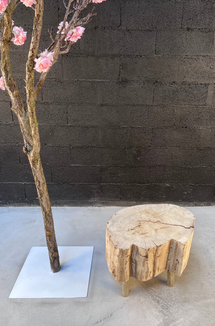 Cette table basse est crée à base d’un tronc en bois flotté.