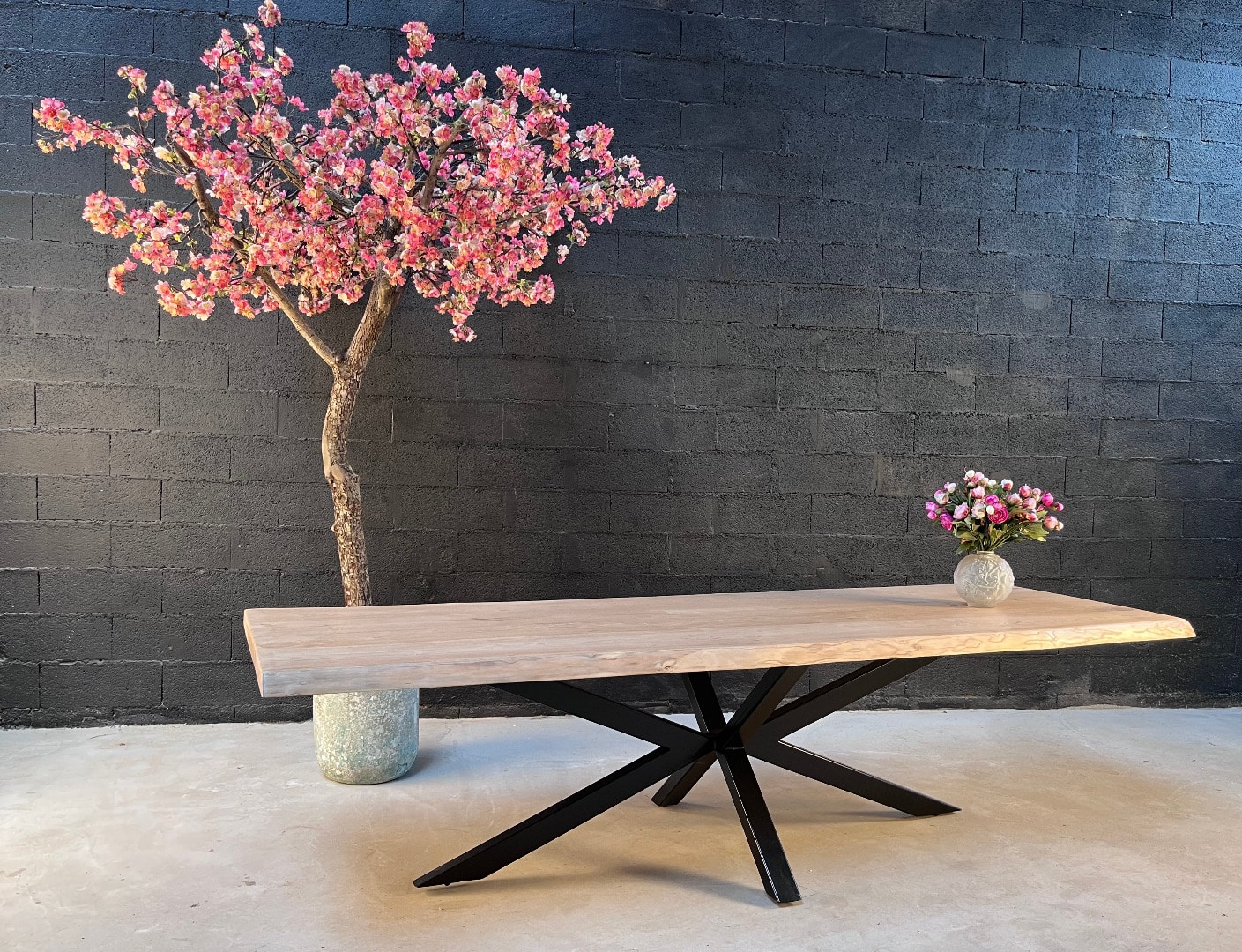 Le plateau repose sur un pied en acier en forme d’étoile.