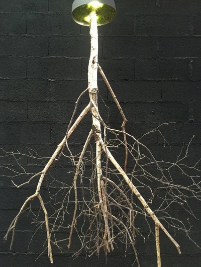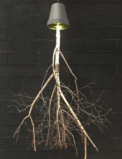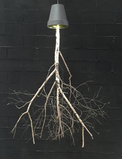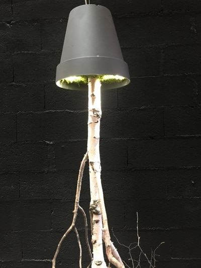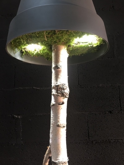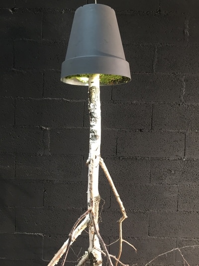 Un arbre en bouleau est planté dans un pot recouvert de mousse stabilisée. Il y a 2 spots leds inclus dans le pot afin d’éclairer à travers les branches mettant ainsi en avant celles ci tout en créant une atmosphère naturelle. Cet arbre tiens avec un système de fixation qui se fixe simplement au plafond par une cheville, le poids total ne dépassant pas 10 kg.