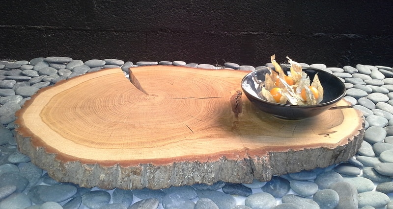 Cette planche à découper est une rondelle de chêne découpé dans un tronc en chêne de 45cm environ par 20cm.
